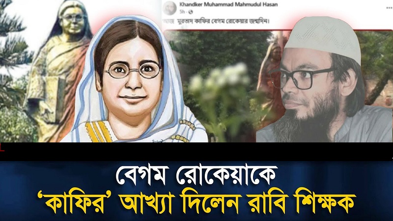 নারী জাগরণ ও নারী অধিকার আন্দোলনের অগ্রদূত বেগম রোকেয়া সাখাওয়াত হোসেনকে ‘মুরতাদ কাফের’ আখ্যা দিয়েছেন রাজশাহী বিশ্ববিদ্যালয়ের (রাবি) পদার্থবিজ্ঞান বিভাগের সহযোগী অধ্যাপক খন্দকার মোহাম্মদ মাহমুদুল হাসান।